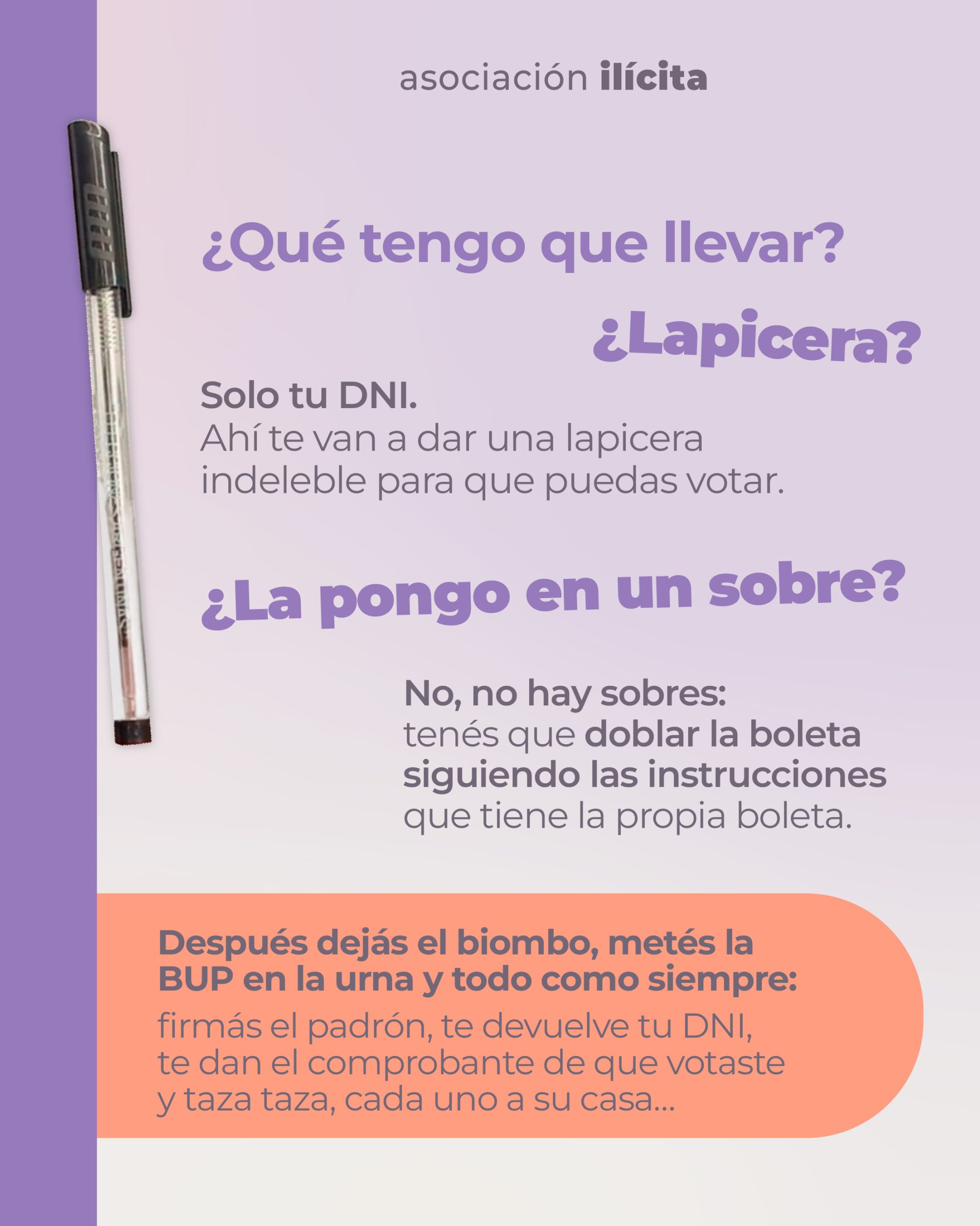Cuando llegás te acercás a tu mesa y la autoridad te va a pedir el DNI, ahí te da una BUP y una lapicera indeleble.