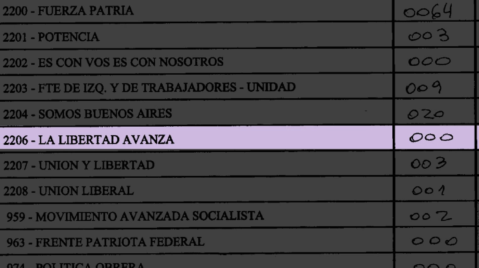 Sin embargo, en las categorías de diputados sí figuran números más consistentes con la participación real. El telegrama, además, carece de firmas de presidente y fiscales.